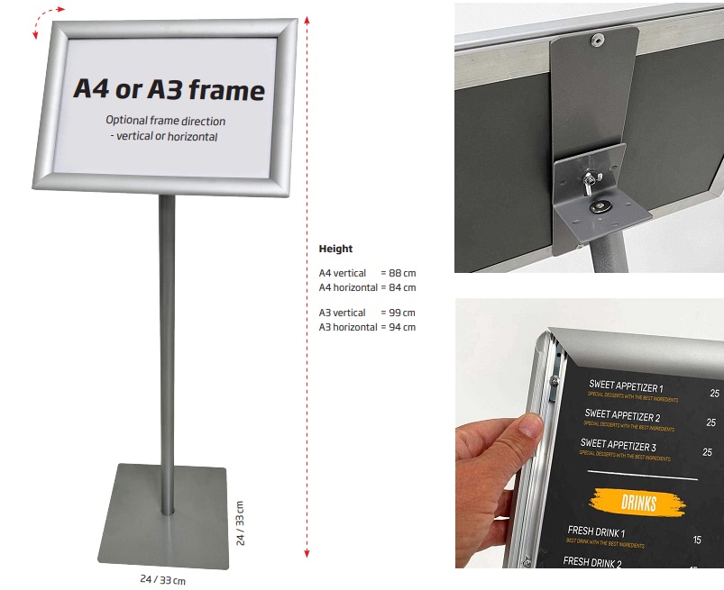 Infostandaard / menubord - firm - A3, zilverkleur