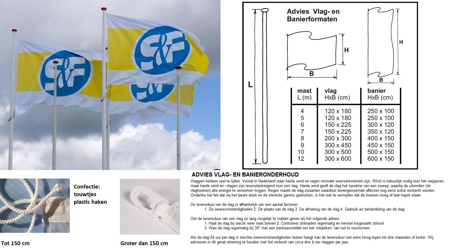 Digitaal geprinte mastvlaggen met kwantumvoordeel. Minimale besteleenheid is 10 stuks. Digitaal druk, UV bestendig, 90% doordruk, van 3-draads geweven glanspolyester vlaggendoek, ca. 110 gr. Volledig geconfectioneerd, rondom gezoomd en aan de mastkant voorzien van kopband en clips of koord. Printklaar PDF-bestand aanleveren op basis van de afmeting van de vlag. Tegen meerprijs kunnen wij die ook voor u opmaken. Minimale bestelhoeveelheid is 10 stuks.
